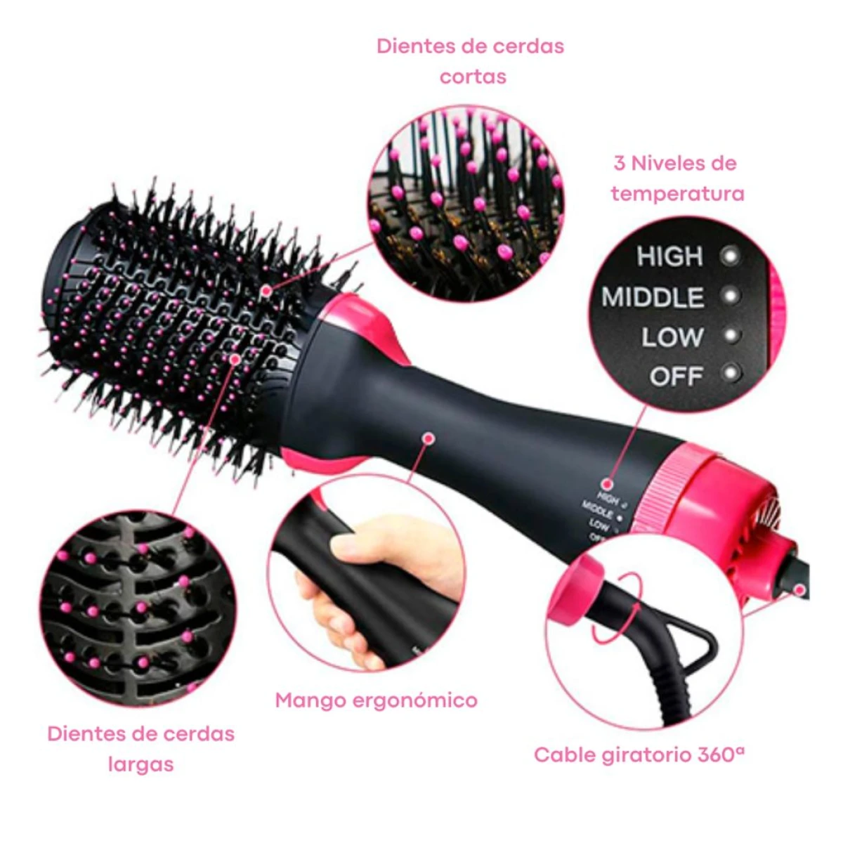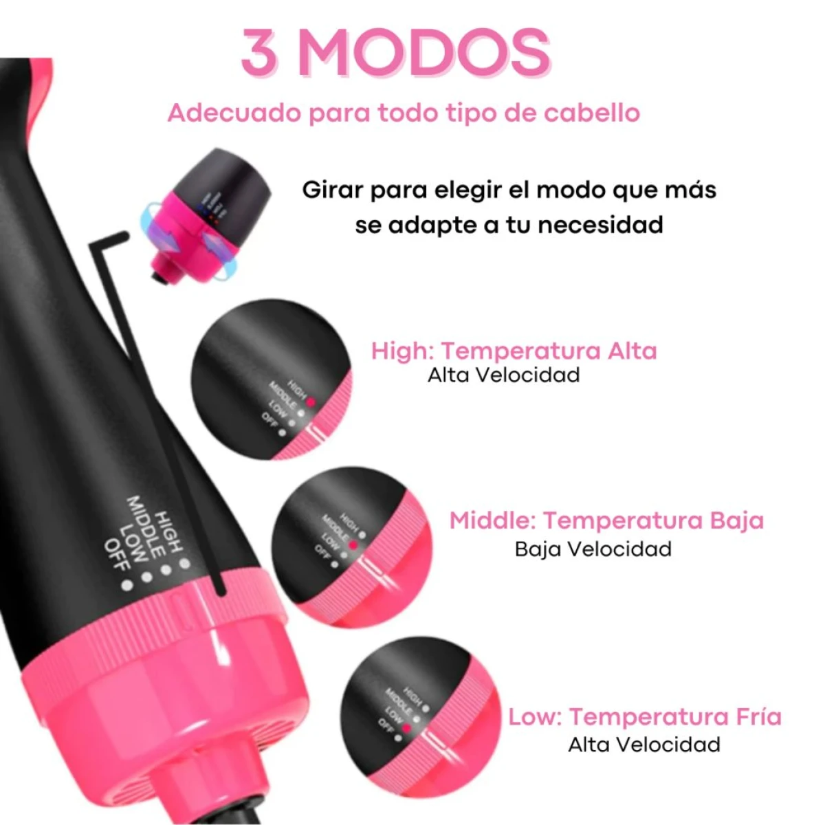 ✔️ 3 niveles de temperatura para personalizar tu experiencia de peinado.