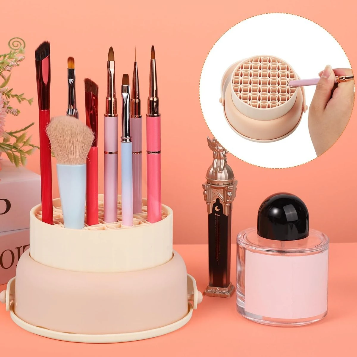 Diseño flexible: el inteligente diseño dos en uno permite almacenar, limpiar y secar brochas de maquillaje. Se puede colocar en la encimera o colgar boca abajo.