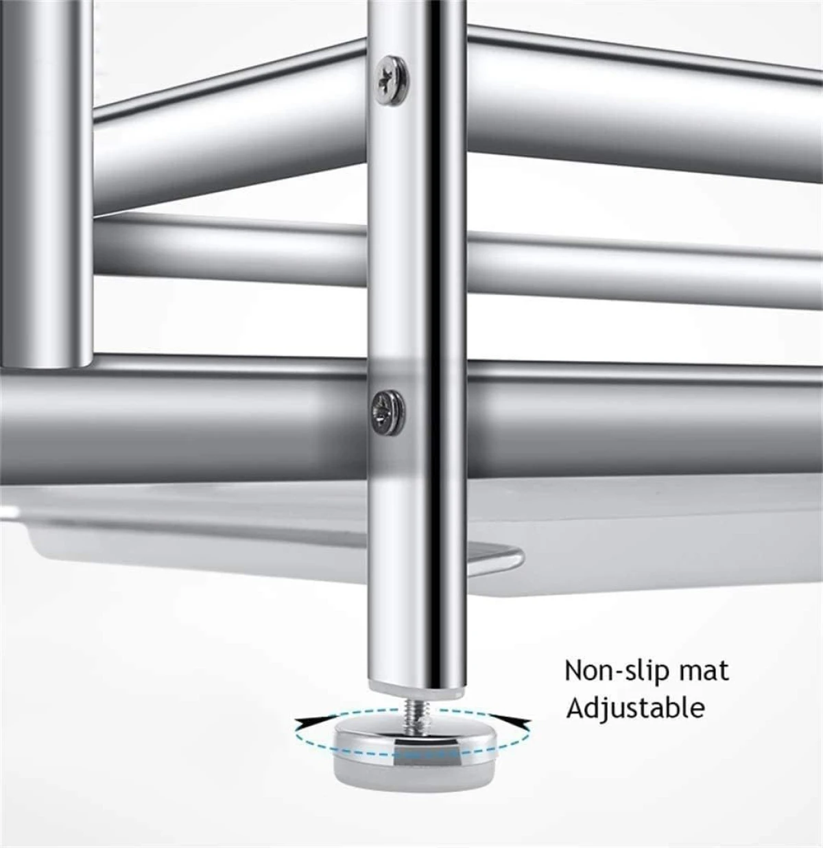 - Doble Piso - Porta tablas - Porta utensilios con recipiente - Bandeja deposito de Agua - Patas regulables en altura - Material: Acero Inoxidable Cromado - Medidas: 58Cm X 25,5Cm X 37Cm