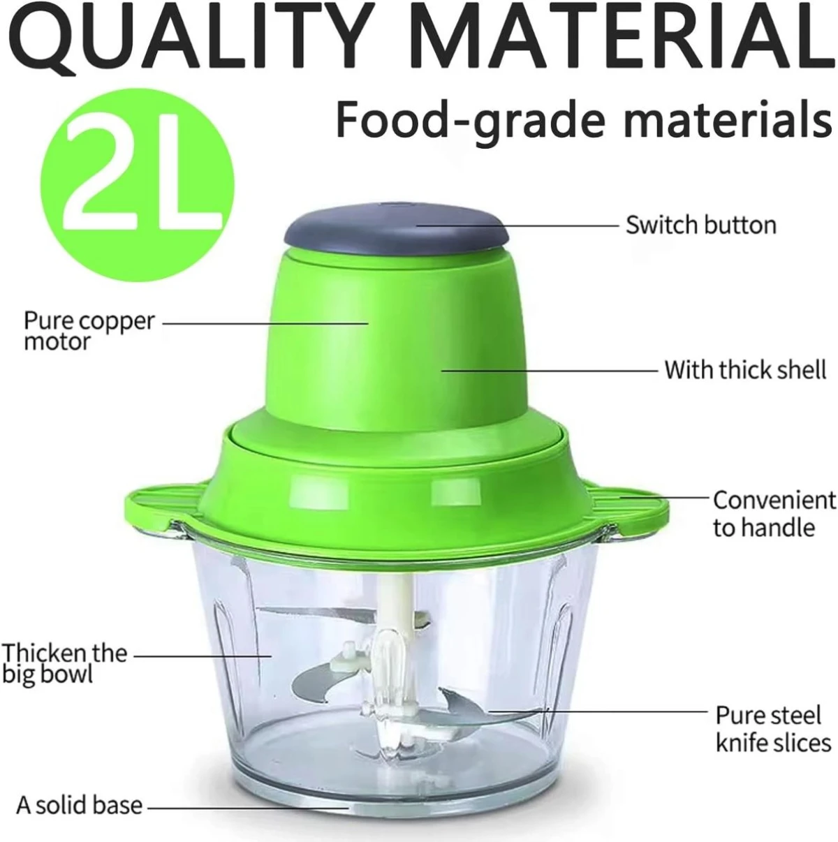 - Capacidad de 2 Litros: Ideal para procesar grandes cantidades de carne y otros ingredientes rápidamente.